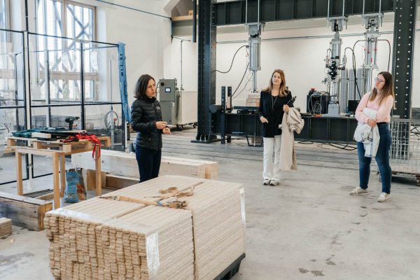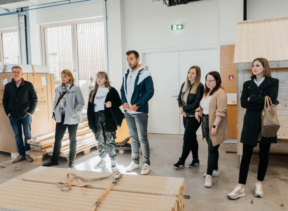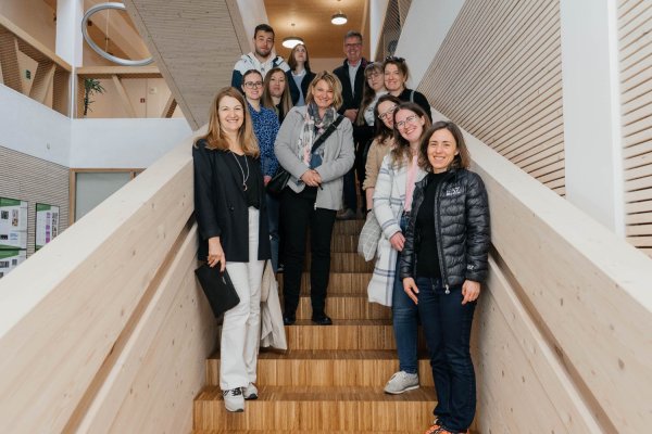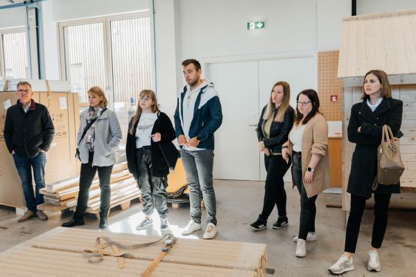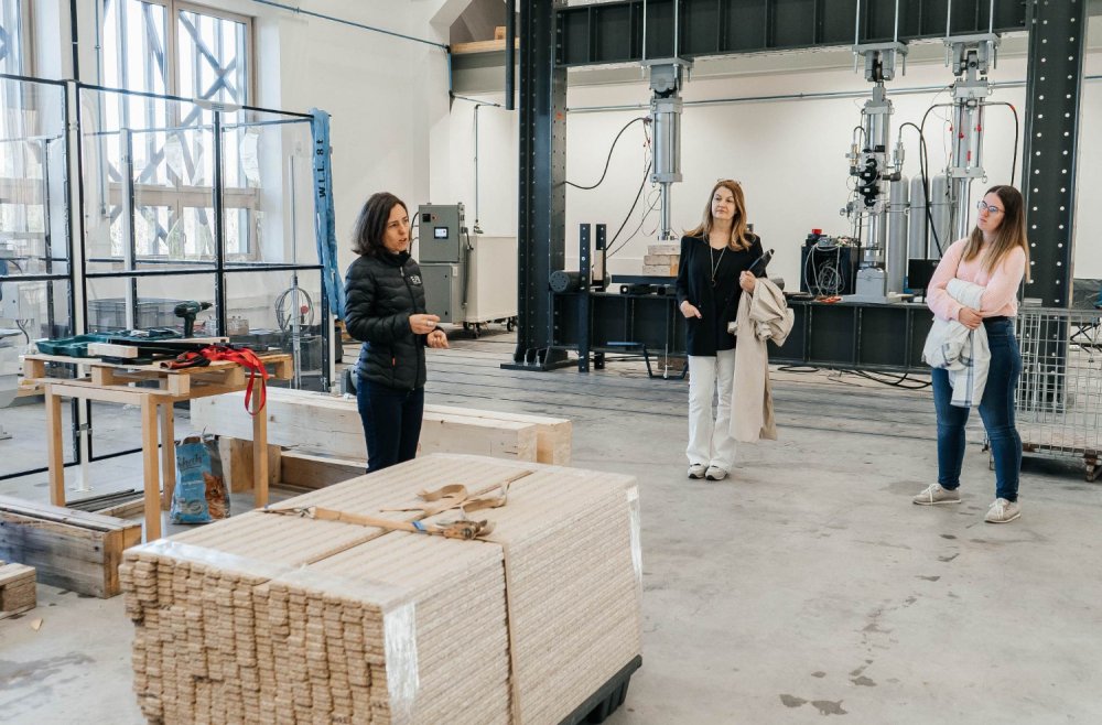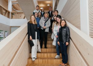 Dr. Andreja Kutnar, direktorica v InnoRenew CoE, je v stavbi inštituta sprejela študente in profesorje iz Fakultete za turistične študije – Turistice in Fakultete za matematiko, naravoslovje in informacijske tehnologije, ki so vključeni v projekt Les v turizmu: Potenciali lesa kot trajnostnega materiala za trajnostni turizem (LesTur), in predstavnike turistične stroke.