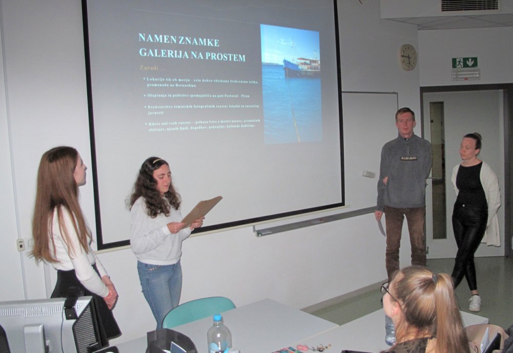 Tretja skupina pa je pod mentorstvom profesorice doc. dr. Petre Zabukovec Baruca pripravila zasnovo tržne znamke Galerije na prostem skozi vrednote, filozofijo, identiteto, emocionalne koristi in vizualizacijo.